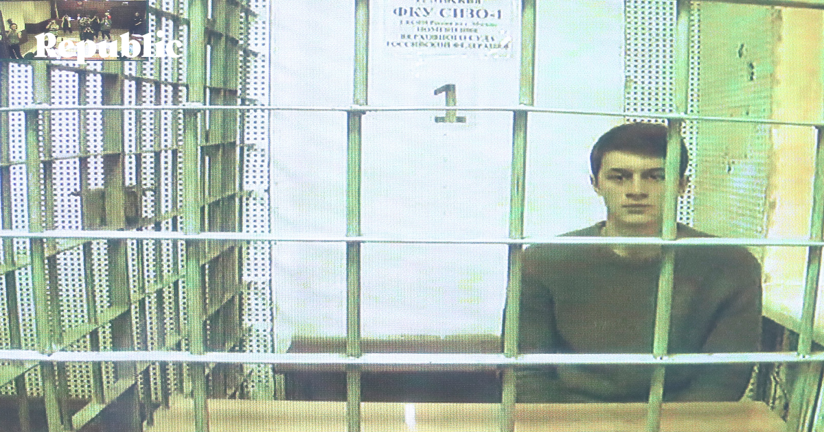 Егор Жуков по видеовключению в суде. Фото: Evgenia Novozhenina / Reuters