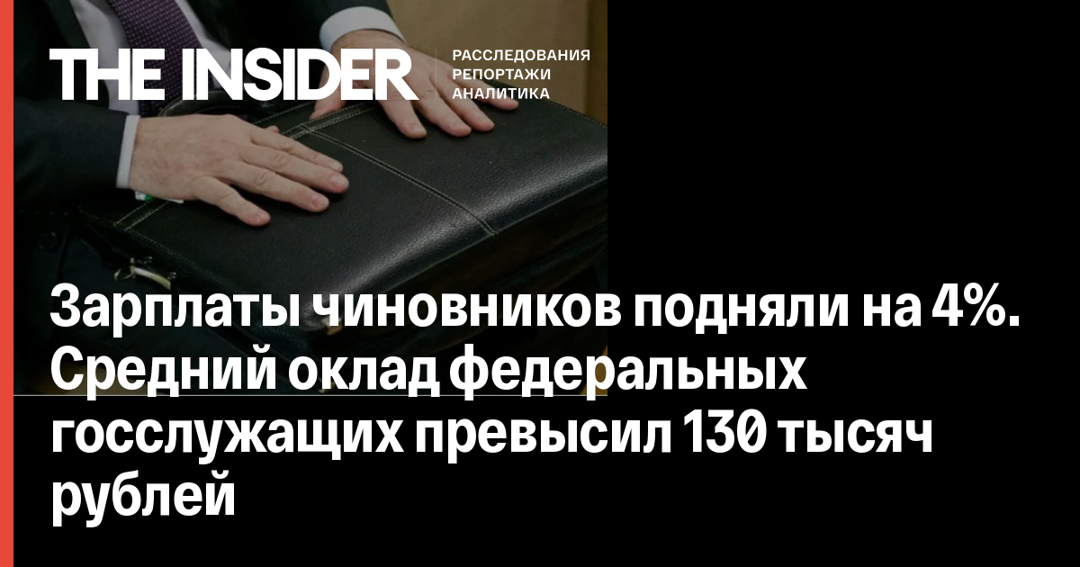 Зарплаты чиновников подняли на 4%. Средний оклад федеральных госслужащих превысил 130 тысяч рублей