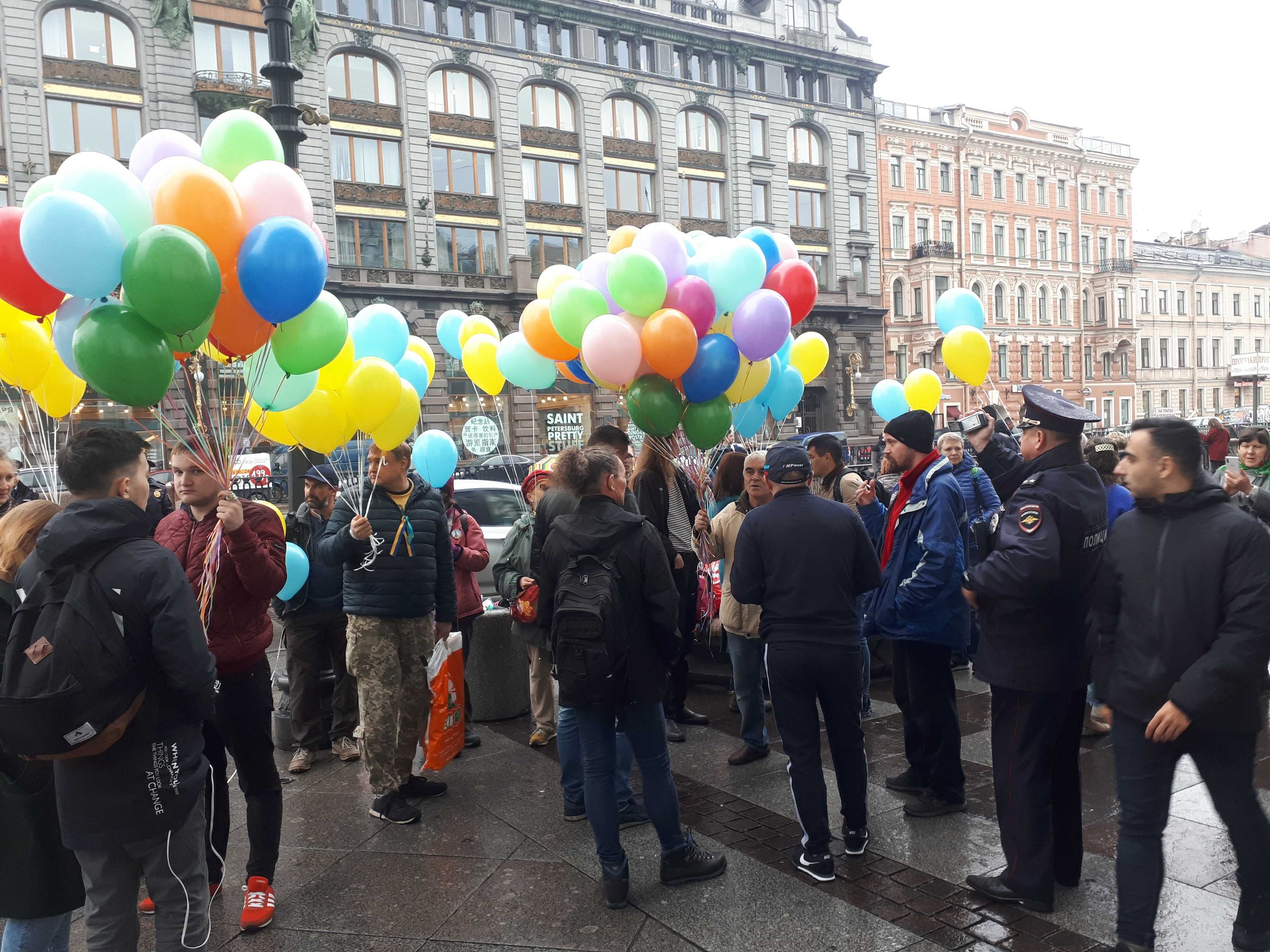В Санкт-Петербурге полиция задержала троих участников акции в поддержку мира и Украины. Об этом сообщает корреспондент «Медузы».
