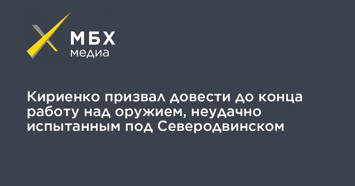 Работа над проектом, в рамках которого в августе на военном полигоне под Северодвинском произошел взрыв, должна быть доведена до конца, заявил замглавы администрации президента Сергей Кириенко, передает «Интерфакс».