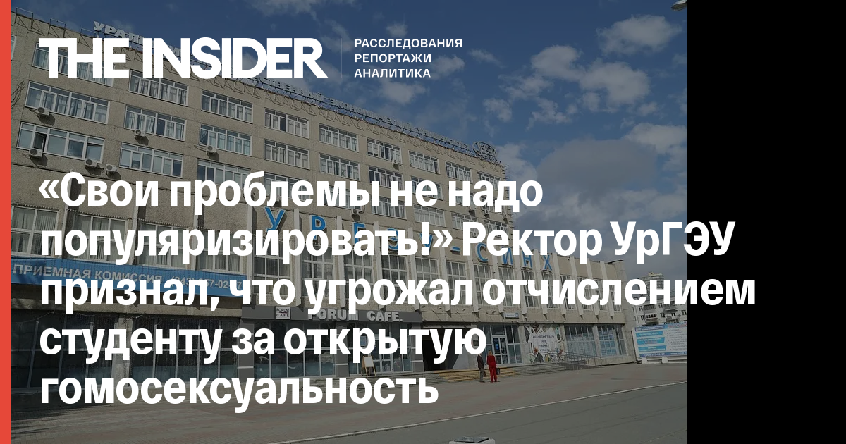 «Свои проблемы не надо популяризировать!» Ректор УрГЭУ признал, что угрожал отчислением студенту за открытую гомосексуальность