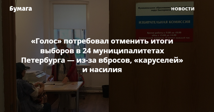Движение «Голос», которое занимается поиском нарушений при голосовании в России, потребовало от избирательной комиссии Петербурга признать недействительными результаты выборов в 24 муниципалитетах города. По данным движения, на них зафиксировали грубые нарушения, не позволяющие выявить волеизъявление граждан. Заявление опубликовано на сайте организации.