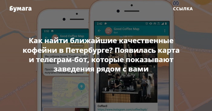 Если пользователь даст сайту доступ к данным о своей геолокации, карта может показать ближайшие к нему заведения. Эта функция также доступна в телеграм-боте goodcoffeemap_bot, созданном одновременно с картой.