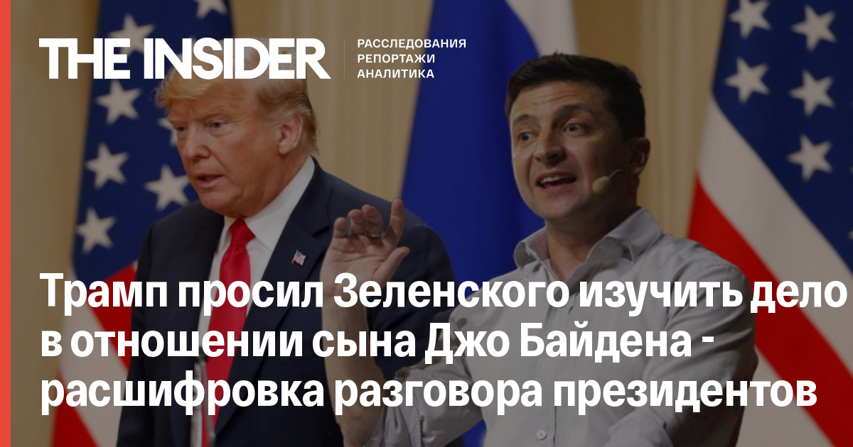 Имя вице-президента США Джо Байдена в тексте документа, состоящего из 5 страниц, встречается несколько раз. В разговоре с Зеленским Трамп заявил, что «было бы здорово», если бы президент Украины изучил дело Байдена. Зеленский пообещал Трампу, что новый генпрокурор Украины рассмотрит это дело. Джо Байден является потенциальным соперником Трампа на президентских выборах в 2020 году.