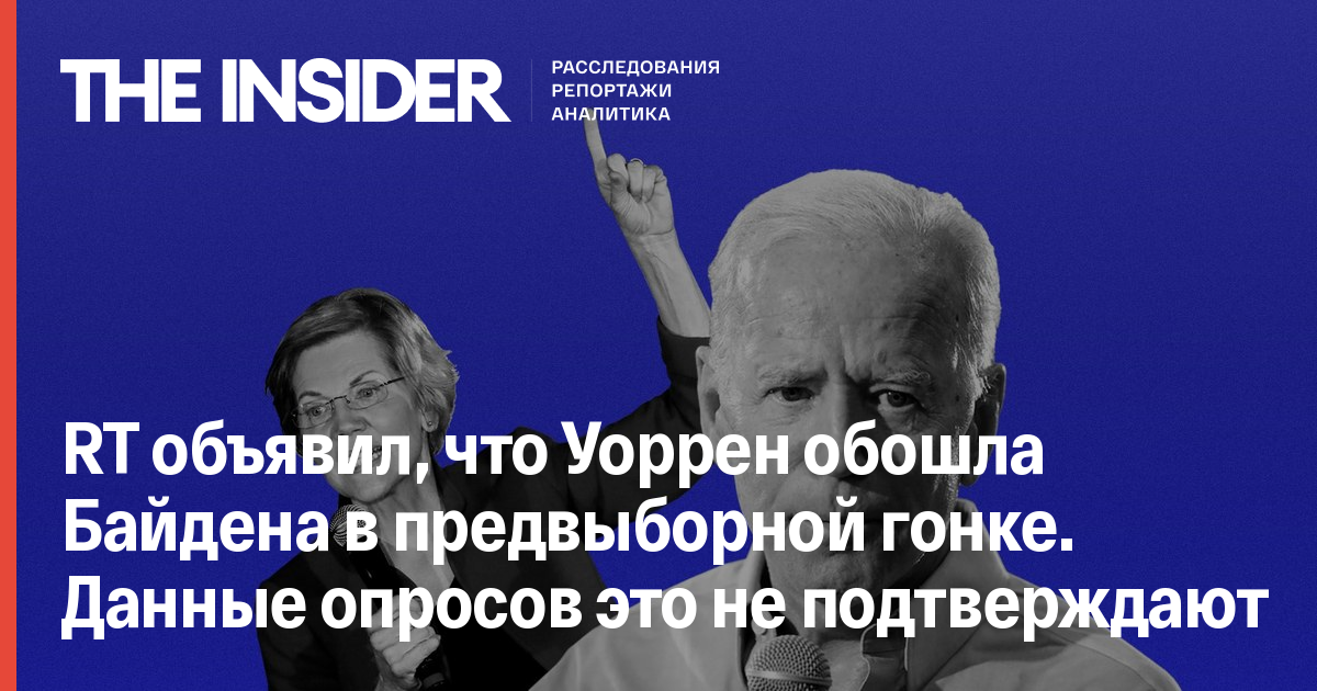RT объявил, что Уоррен обошла Байдена в предвыборной гонке. Данные опросов это не подтверждают