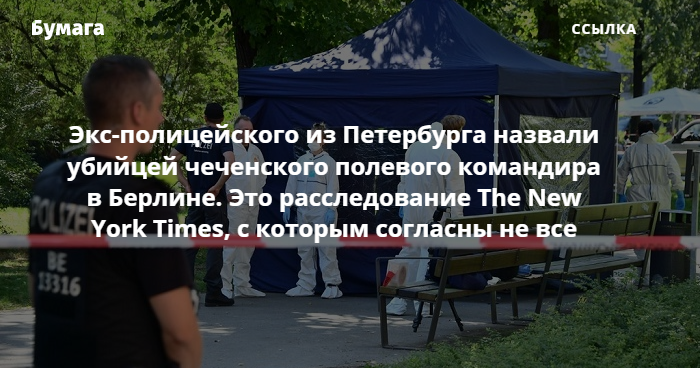 Берлинское отделение американской газеты The New York Times выпустило расследование об убийстве чеченского полевого командира Зелимхана Хангошвили, произошедшее в столице Германии 23 августа. В материале журналисты назвали возможным убийцей экс-полицейского из Петербурга Владимира Степанова, которого в нулевые осудили в России на 24 года заключения за убийство владелицы ОАО «Проммашинструмент».