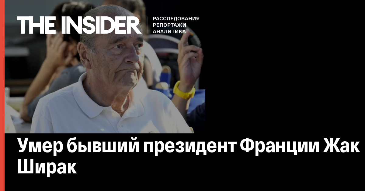 Умер бывший президент Франции Жак Ширак. Он скончался утром 26 сентября у себя дома в Париже в кругу семьи, сообщил Le Figaro зять Ширака Фредерик Сала-Бару.