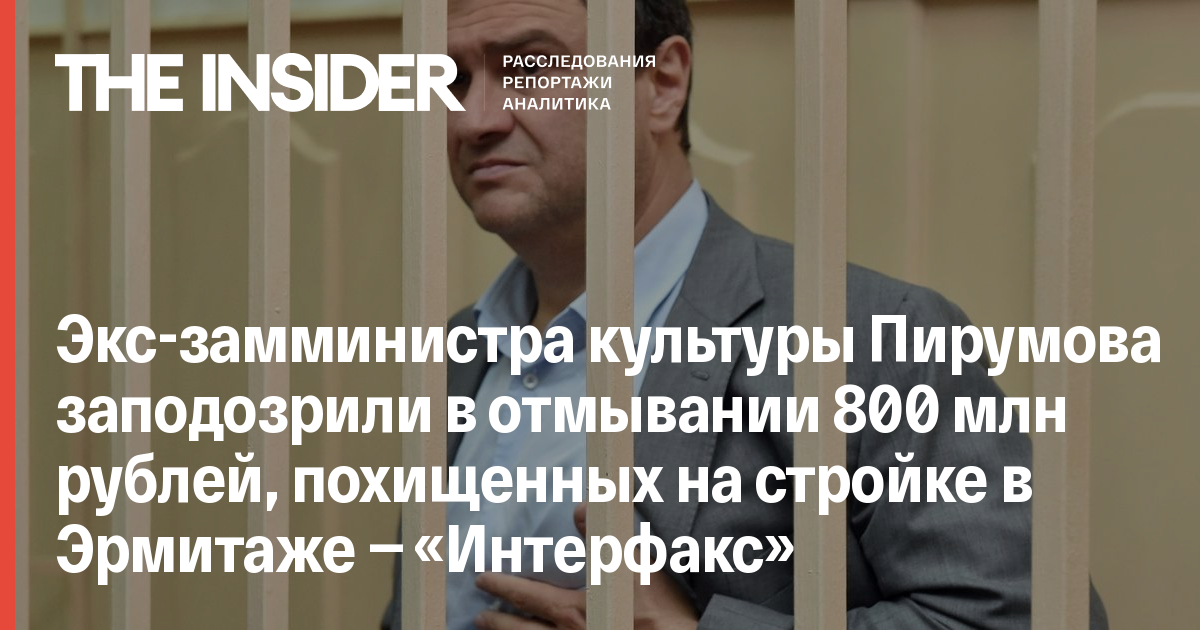 Экс-замминистра культуры Пирумова заподозрили в отмывании 800 млн рублей, похищенных на стройке в Эрмитаже — «Интерфакс»