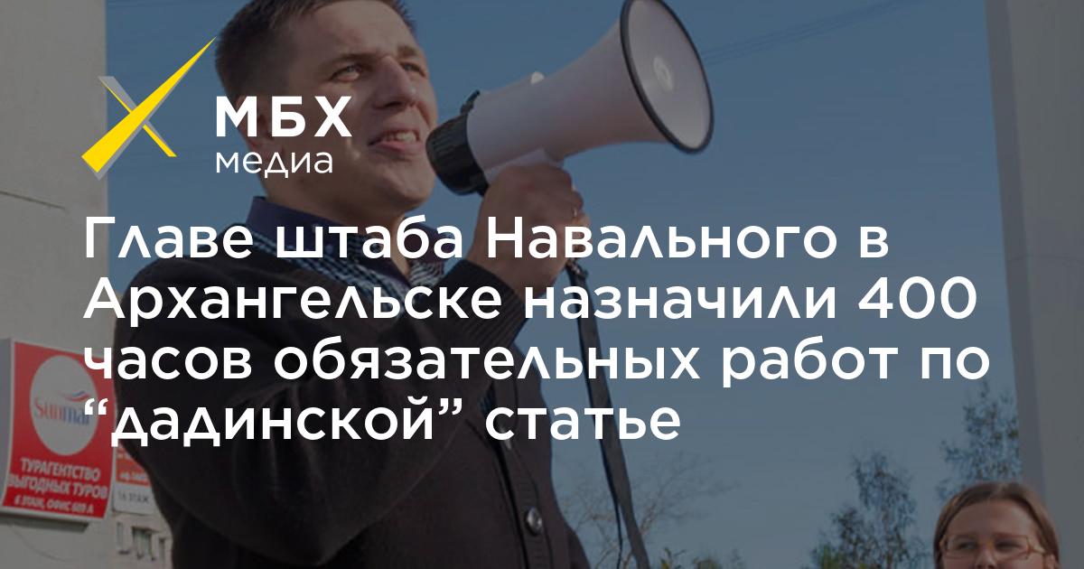 Главе штаба Навального в Архангельске назначили 400 часов обязательных работ по «дадинской» статье