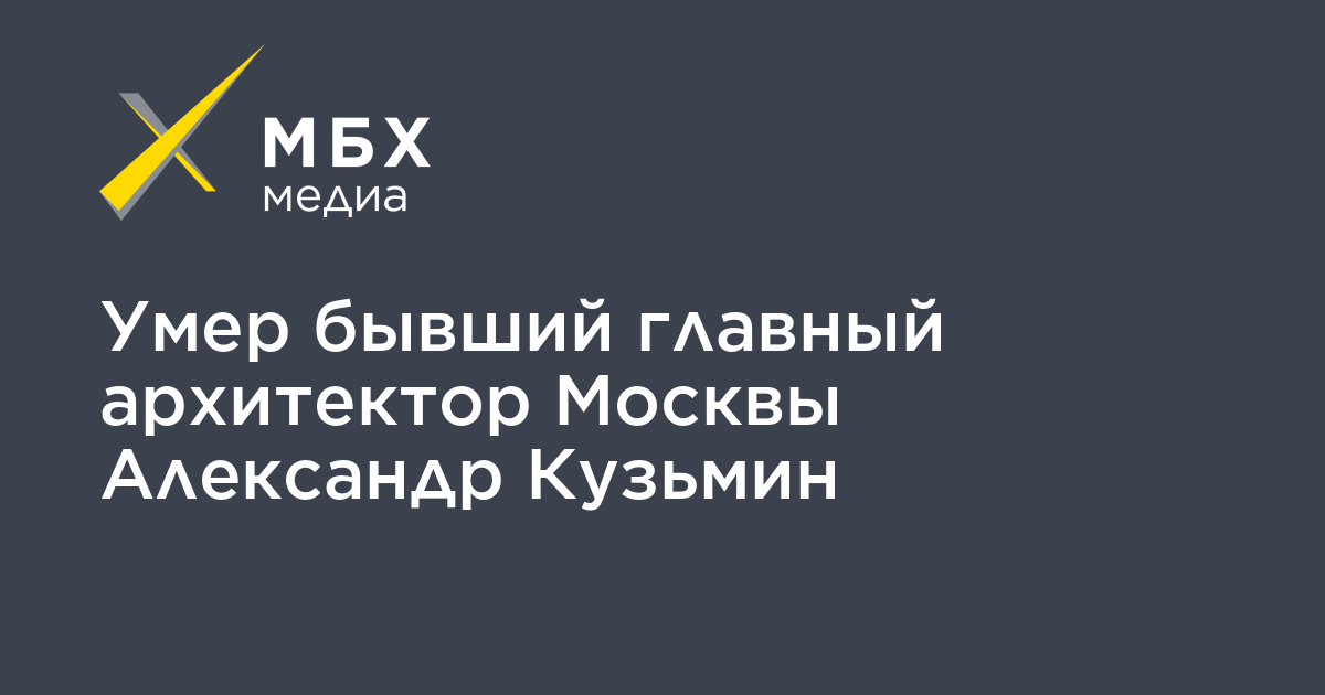 Президент Российской академии архитектуры и строительных наук , бывший главный архитектор Москвы Александр Кузьмин умер после тяжелой болезни на 69-м году жизни, об этом сообщает «Интерфакс» со ссылкой на источник.