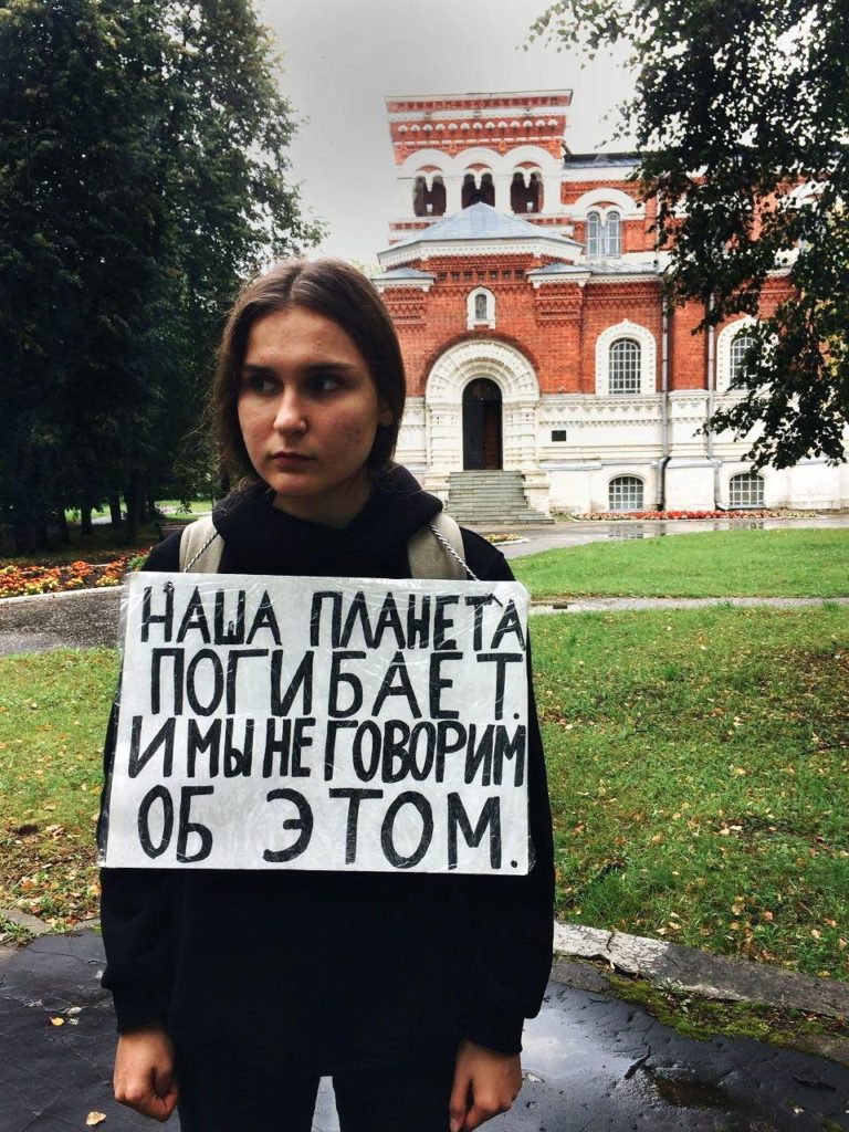 В конце августа прошел мой первый одиночный пикет за климат. Я была подписана на профиль российского отделения движения Fridays For Future и была очень мотивирована людьми, которые участвовали в разных акциях. Я вышла с пикетом, несмотря на то что было очень страшно. Я позвала с собой подругу, и мы вместе нарисовали плакаты. Реакция людей была достаточно странной, кто-то говорил нам: “Девочки, какое глобальное потепление, какой вы канал смотрите? Поскорее уберите от себя телевизор!” В ответ я пыталась рассказывать людям факты.