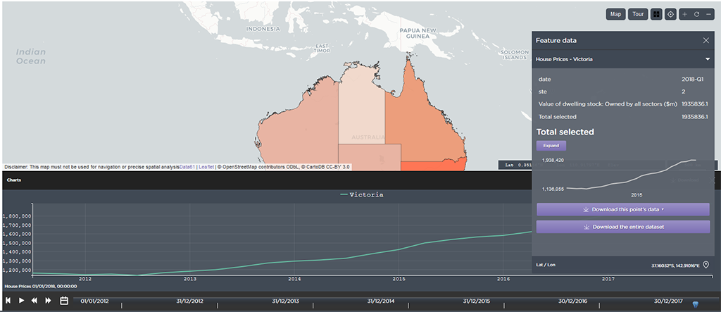 Кликнув по «Источнику данных на карте», вы увидите всплывающее окно с информацией. Так платформа загружает наборы данных из Австралийского института здравоохранения и социального обеспечения и Австралийского бюро статистики. Всю доступную информацию можно сохранить.