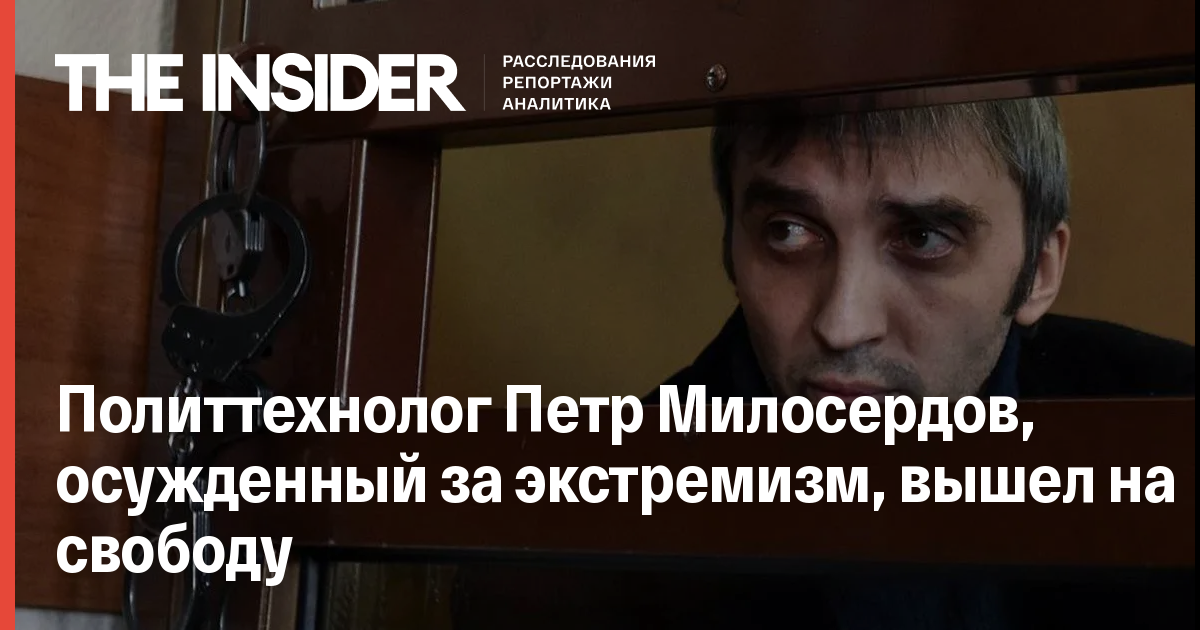 Политтехнолог Петр Милосердов, осужденный за экстремизм, вышел на свободу