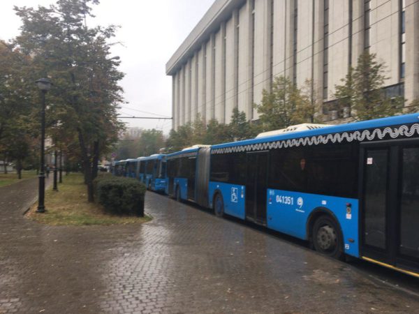 В переулке у метро «Красные ворота» недалеко от проспекта Сахарова стоят четыре автобуса с сотрудниками Росгвардии. Об этом сообщает корреспондент «МБХ медиа.