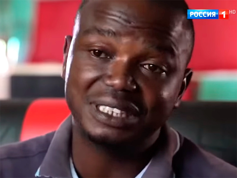 В сюжете, вышедшем в эфир в программе "Вести недели" Дмитрия Киселева, человек, назвавшийся Бьенвеню Довокама, рассказал спецкору "Вестей" Александру Рогаткину, что россияне заплатили ему сумму примерно равную 8 тысячам рублей, чтобы он отвез их из столицы в Бомбари. В городе Себю россияне, по неизвестной причине, решили изменить маршрут и поехали на север.