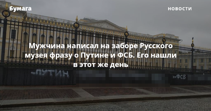 Петербуржец написал на заборе Русского музея фразу о Путине и ФСБ