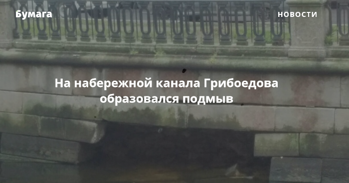На набережной канала Грибоедова образовался подмыв. Об этом сообщают очевидцы в социальных сетях.
