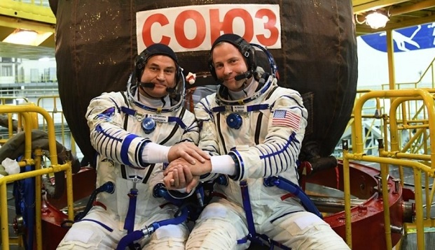Экипаж корабля "Союз". Фото из твиттера Роскосмоса