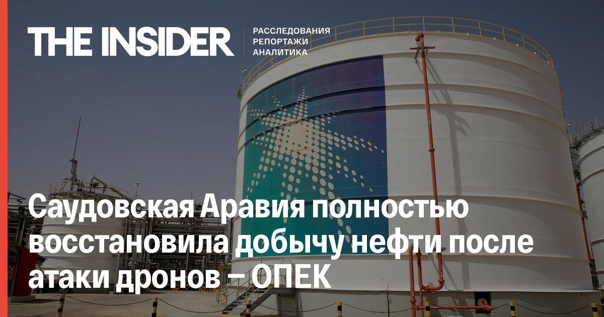 Саудовская Аравия полностью восстановила добычу нефти после атаки дронов — ОПЕК