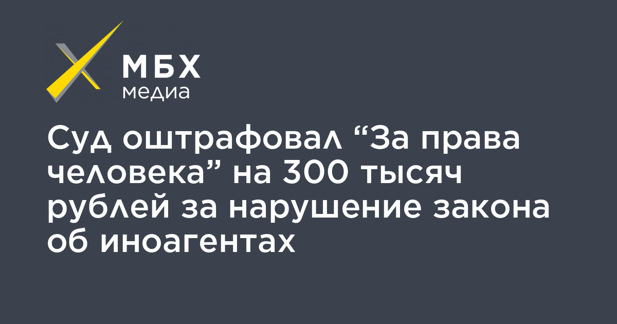 Суд оштрафовал «За права человека» на 300 тысяч рублей за нарушение закона об иноагентах
