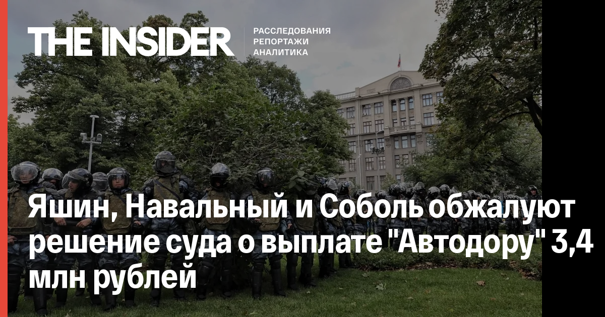 Яшин, Навальный и Соболь обжалуют решение суда о выплате "Автодору" 3,4 млн рублей