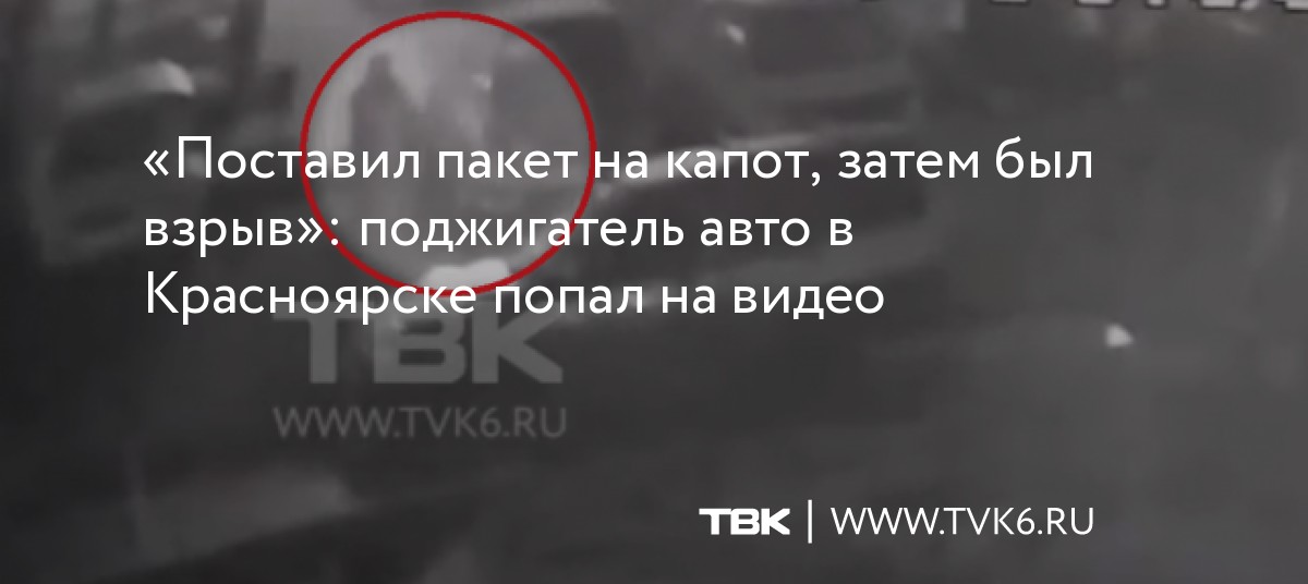 На видео, которое оказалось в распоряжении «ТВК Красноярск», видно, как к припаркованной во дворе машине действительно подходит мужчина и оставляет пакет с неизвестным содержимым на ее капоте и быстро отходит. Спустя минуту автомобиль вспыхивает.