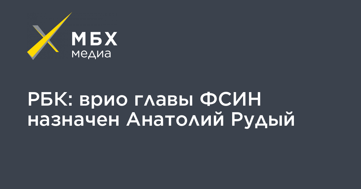 Временно исполняющим обязанности директора ФСИН назначен первый заместитель главы ведомства Анатолий Рудый, об этом сообщает РБК со ссылкой на источник.