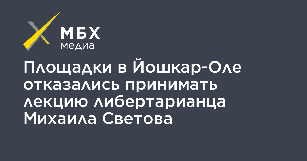 Дом союзов в Йошкар-Оле отказался принимать лекцию одного из лидеров Либертарианской партии Михаила Светова в день мероприятия. Об этом Светов сообщил «МБХ медиа».