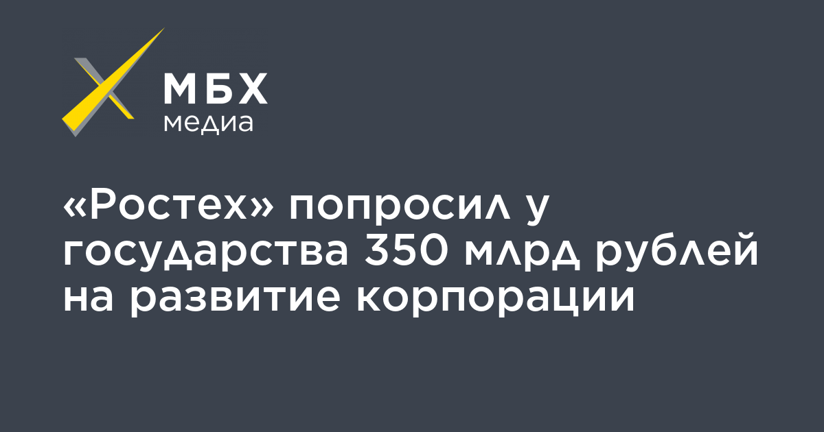 «Ростех» подготовил для правительства три варианта развития корпорации. Для этого компания просит у государства 350 млрд рублей субсидий, об этом пишет «Коммерсант».