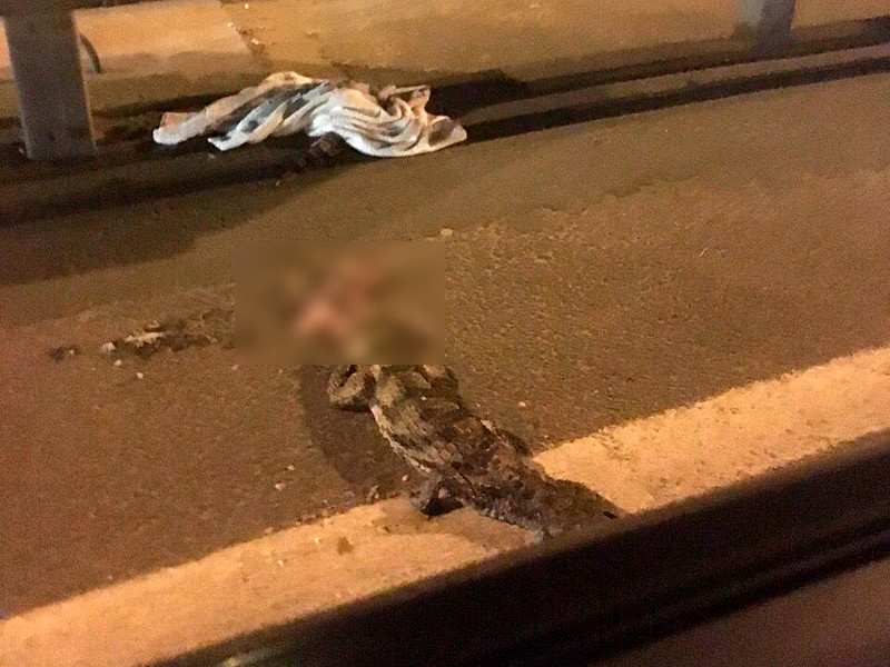 В Подмосковье у села Тарасовка грузовик сбил на дороге крокодила (ФОТО)