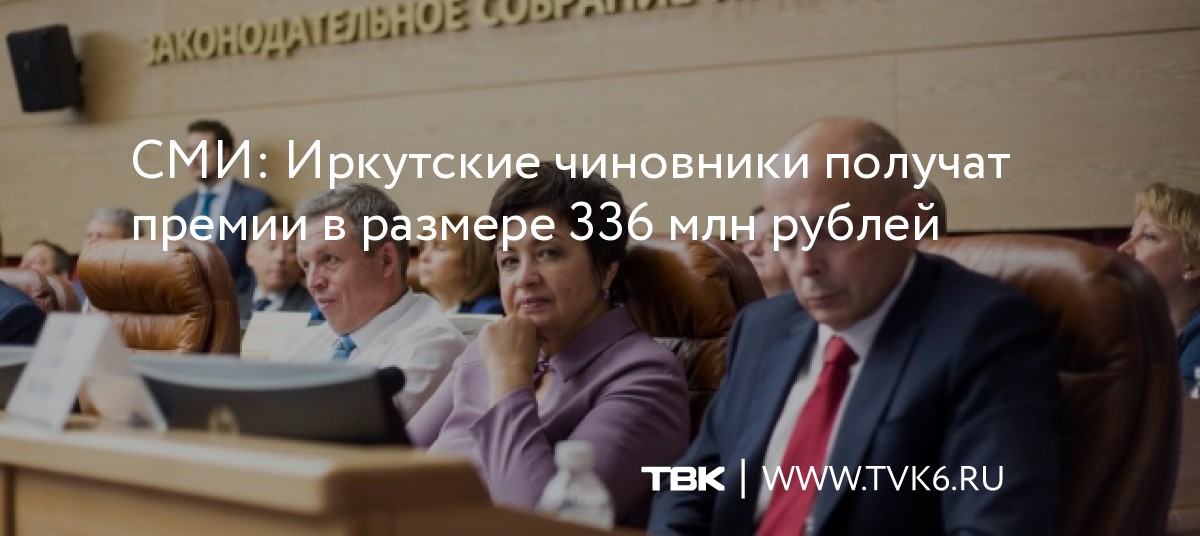 СМИ: Иркутские чиновники получат премии в размере 336 млн рублей