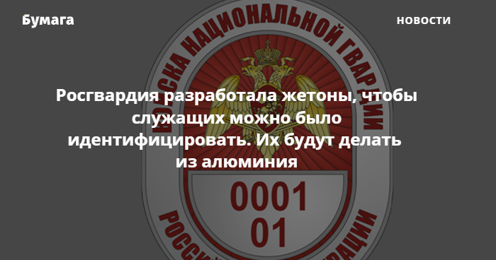 Как говорится в сопроводительном документе, жетоны разработаны для идентификации военнослужащих и сотрудников Росгвардии.