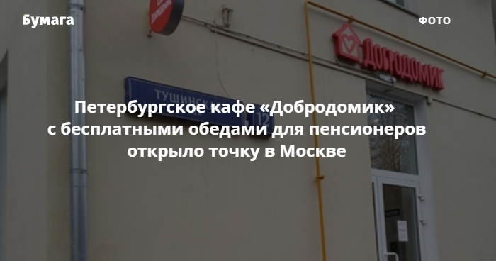 В Москве заработала точка петербургского благотворительного кафе «Добродомик» с бесплатными обедами для пенсионеров. Об этом сообщается на странице заведения во «ВКонтакте».