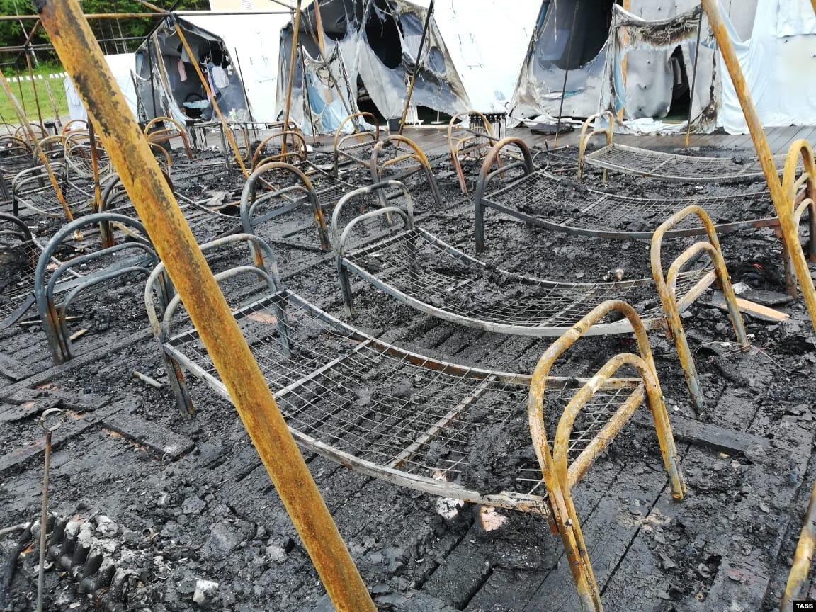 - Всего в лагере на момент пожара находились 189 детей. Из 26 палаток, в которых они проживали, сгорели 20, шесть обгорели. Сейчас лагерь "Холдоми" закрыт властями Хабаровского края.