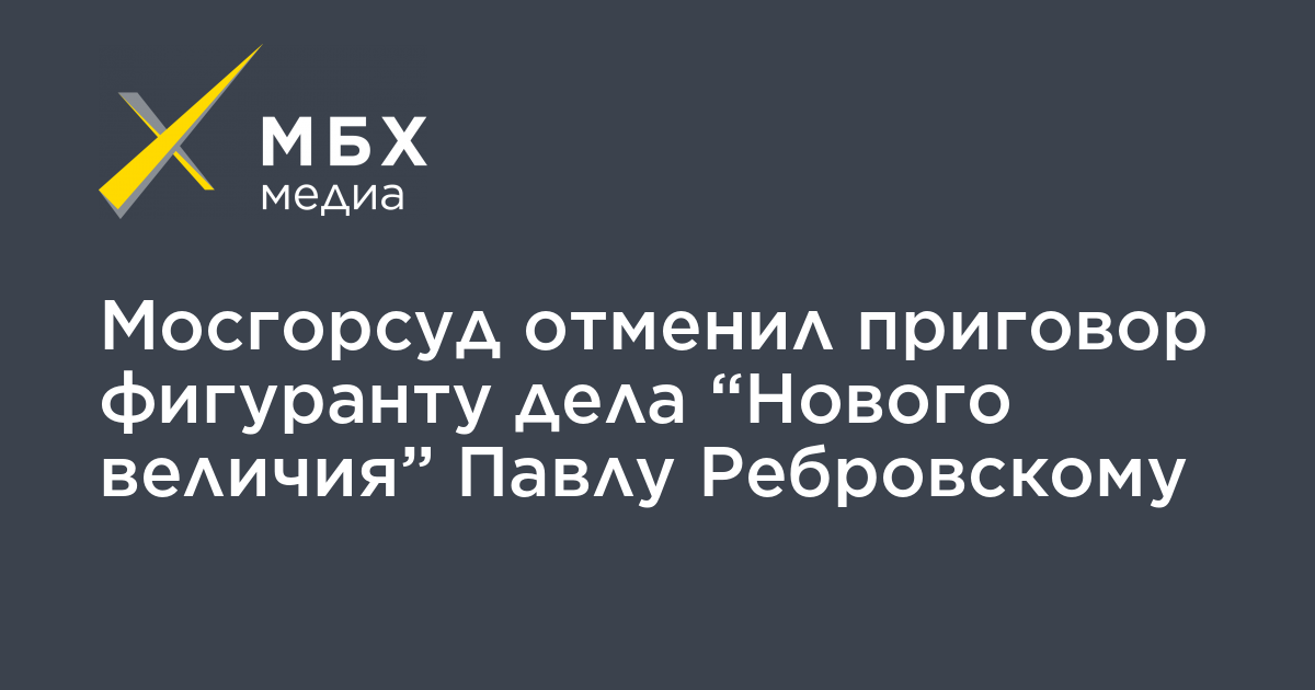 Мосгорсуд отменил приговор фигуранту дела «Нового величия» Павлу Ребровскому, осужденному на 2,5 года колонии по обвинению в создании экстремистского сообщества. Об этом сообщает корреспондент «МБХ медиа».