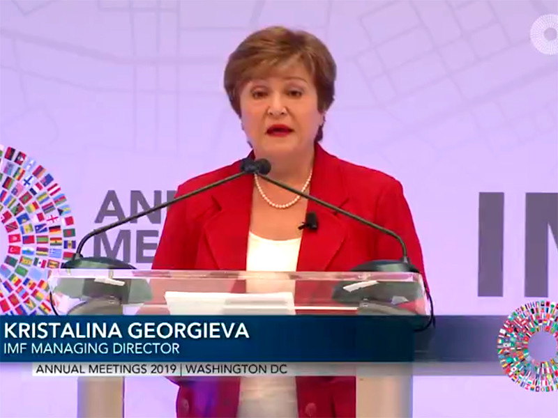 На следующей неделе МВФ опубликует новый прогнозно-аналитический доклад по состоянию и ближайшим перспективам мировой экономики, в котором, как пообещала Георгиева, "будут содержаться корректировки на 2019 и 2020 годы в сторону понижения" темпов роста мировой экономики.
