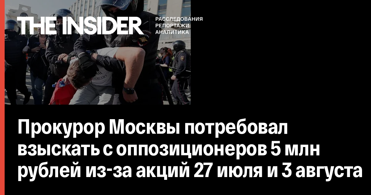 Прокурор Москвы потребовал взыскать с оппозиционеров 5 млн рублей из-за акций 27 июля и 3 августа