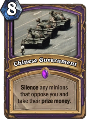Blizzard стали критиковать после того, как издатель сообщил о дисквалификации гонконгского игрока Вай Чунга с турнира по Hearthstone за призыв к освобождению Гонконга во время прямой трансляции. Компания на год отстранила киберспортсмена от участия в соревнованиях и лишила призовых за «оскорбление общественности» и нанесение ущерба имиджу бренда.