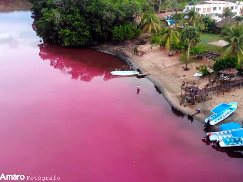 Специалисты взяли пробы воды и ждут результатов лабораторных анализов. По словам биолога из Морского университета (UMAR) Алехандры Торрес Ариньо, дожди понизили соленость лагуны, чем создали благоприятные условия для бурного размножения микроорганизмов, которые привели к окрашиванию воды в столь необычный цвет.