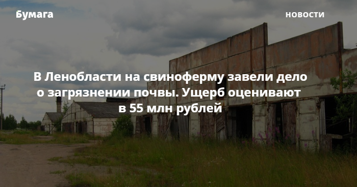 В Ленинградской области Следственный комитет возбудил уголовное дело по статье о порче земли (ч. 1 ст. 254 УК РФ) после проверки предприятия по разведению свиней. Органы сообщили, что установили загрязнение почвы в поселке Ромашки.