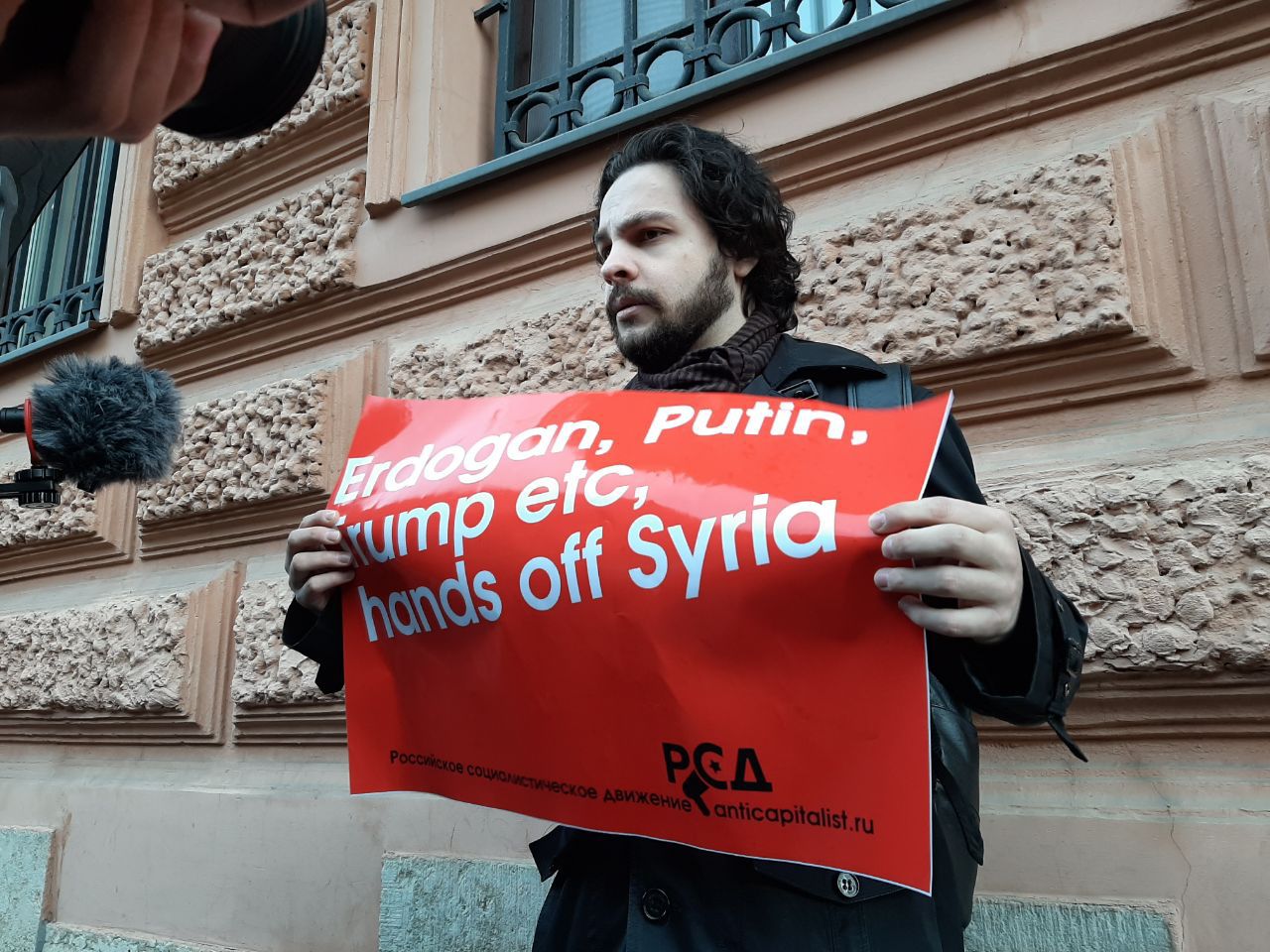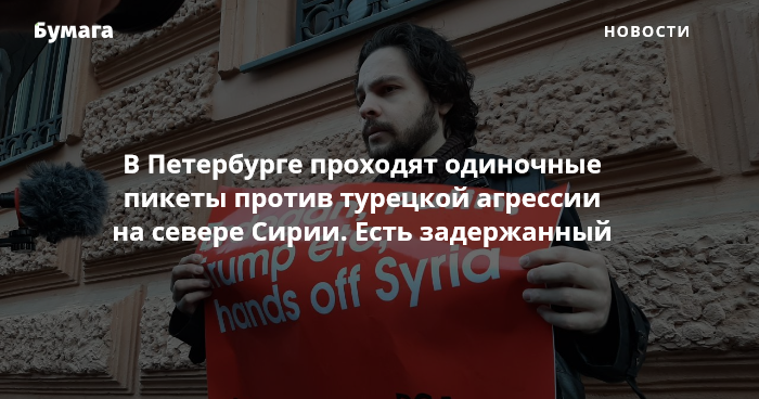 В Петербурге прошли одиночные пикеты против турецкой агрессии на севере Сирии. Есть задержанный
