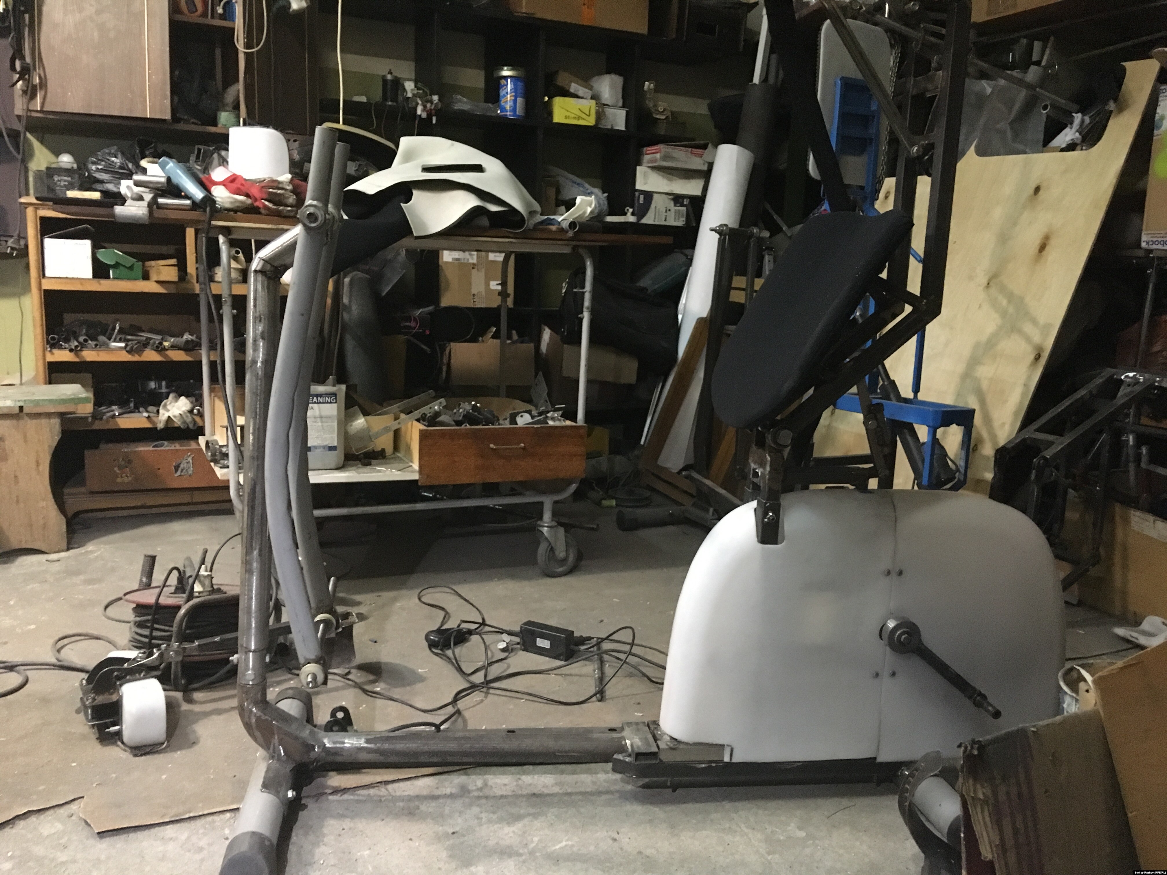 В небольшой мастерской не развернуться: посреди полутемной комнаты, похожей на тесный гараж, стоят два металлических агрегата с проводами. Отдаленно они напоминают спортивные шаговые тренажеры, только собраны из подручных средств. Поверить, что именно здесь разрабатывается инновационная техника, непросто.