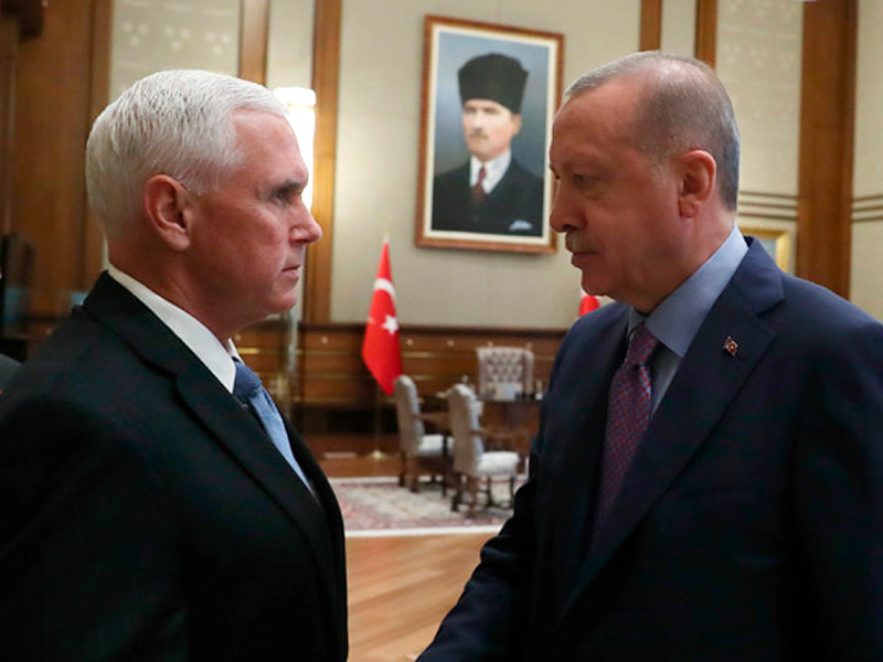 Ранее в четверг Пенс объявил о достижении соглашения с Анкарой о прекращении боевых действий на севере Сирии в обмен на отвод сил курдов от сирийско-турецкой границы. Вице-президент США также добавил, что Вашингтон всегда поддерживает контакт "с сирийскими оборонительными силами", и помогает отводить их в зону безопасности, расположенную примерно в 30 км от сирийско-турецкой границы.