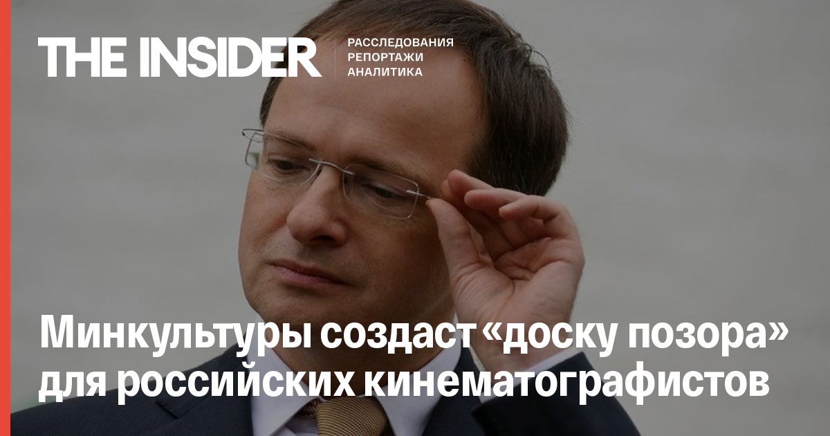 Министр культуры Владимир Мединский заявил о создании «доски позора» для российских кинематографистов, которые получили господдержку, но не вернули деньги или не сняли фильм. Об этом он заявил на встрече Владимира Путина с сотрудниками и студентами ВГИК.