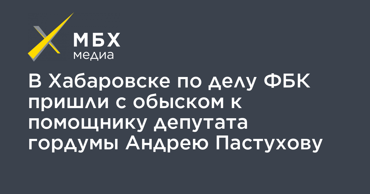 В Хабаровске в рамках следственных действий по делу ФБК пришли с обыском к помощнику депутата городской думы Андрею Пастухову. Об этом «МБХ медиа» рассказал координатор местного штаба Навального Алексей Ворсин.