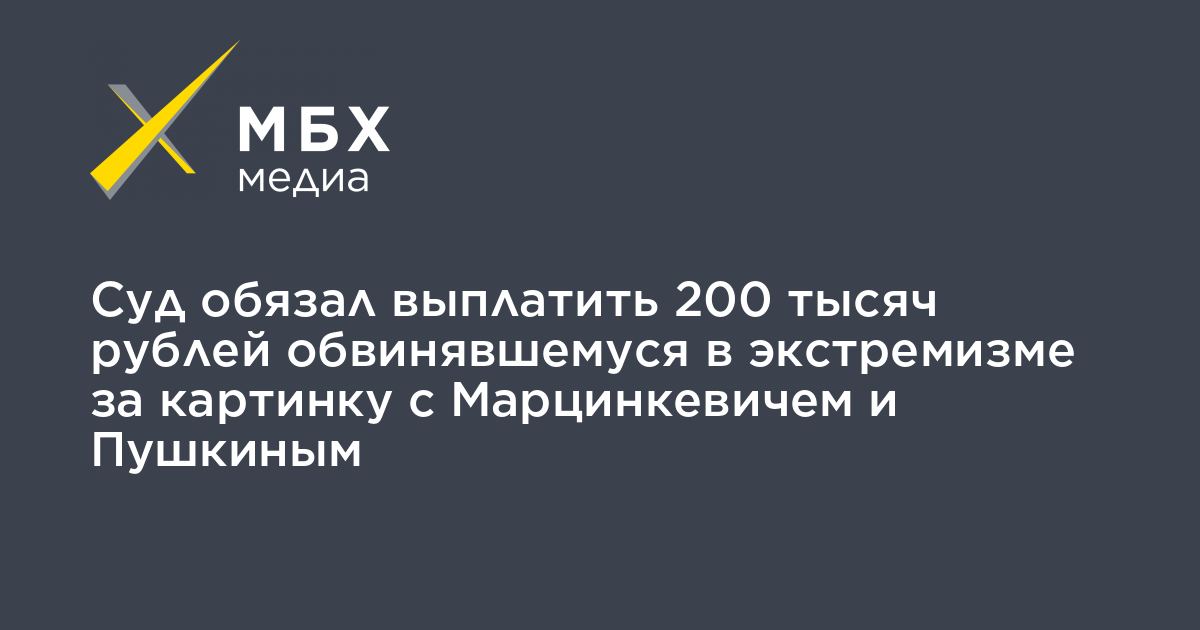 Суд обязал выплатить 200 тысяч рублей обвинявшемуся в экстремизме за картинку с Марцинкевичем и Пушкиным