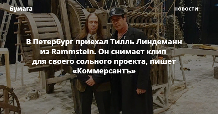 Солист немецкой группы Rammstein Тилль Линдеманн находится в Петербурге. Он прилетел 11 октября и снимает новый клип для своего сольного метал-проекта Lindemann, сообщает «Коммерсантъ».
