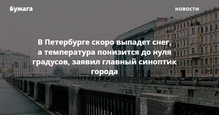 В начале следующей недели в Петербурге ожидается снег, а температура опустится до нуля градусов. Об этом сообщает «Фонтанка» со ссылкой на начальника Гидрометцентра города Александра Колесова.