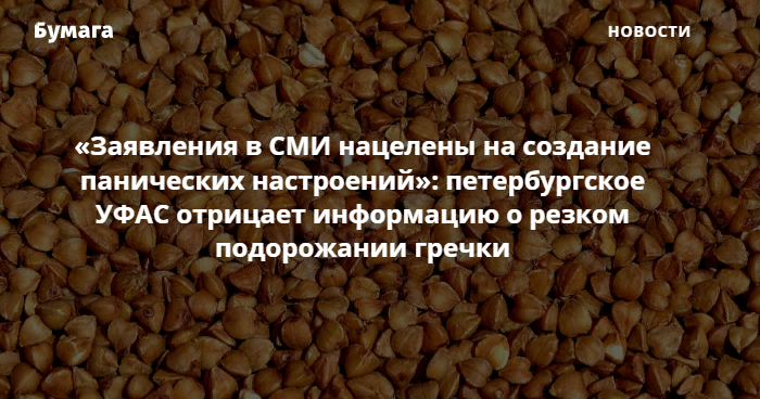 УФАС Петербурга отрицает информацию о резком подорожании гречневой крупы