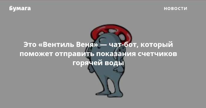 Чат-бот «Вентиль Веня» представляет собой кнопку в нижнем правом углу экрана на сайте компании. С его помощью можно отправить данные об объеме использованной горячей воды, указав номер лицевого счета.